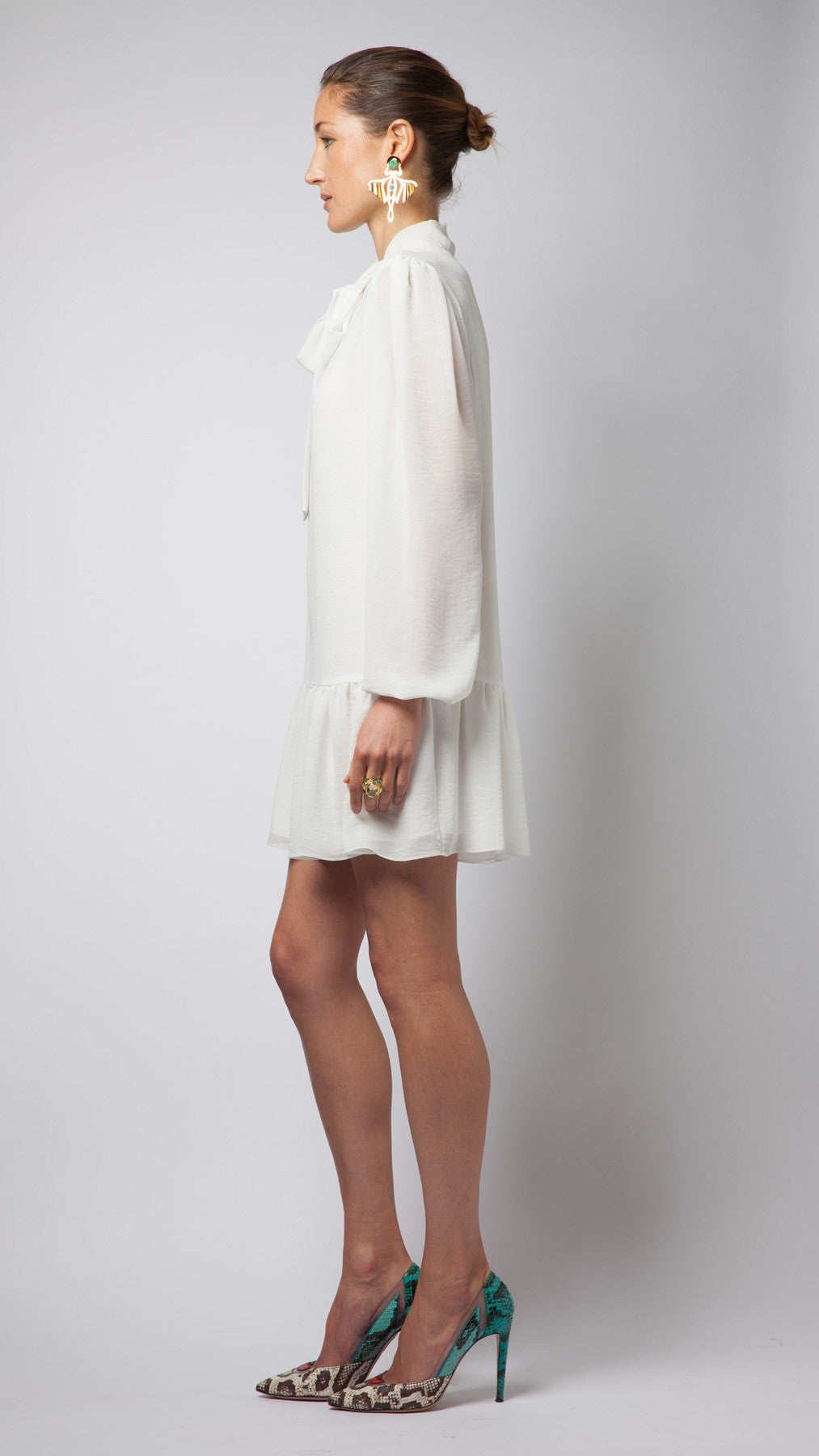 Ivory Crepe Pussy-Bow Dress