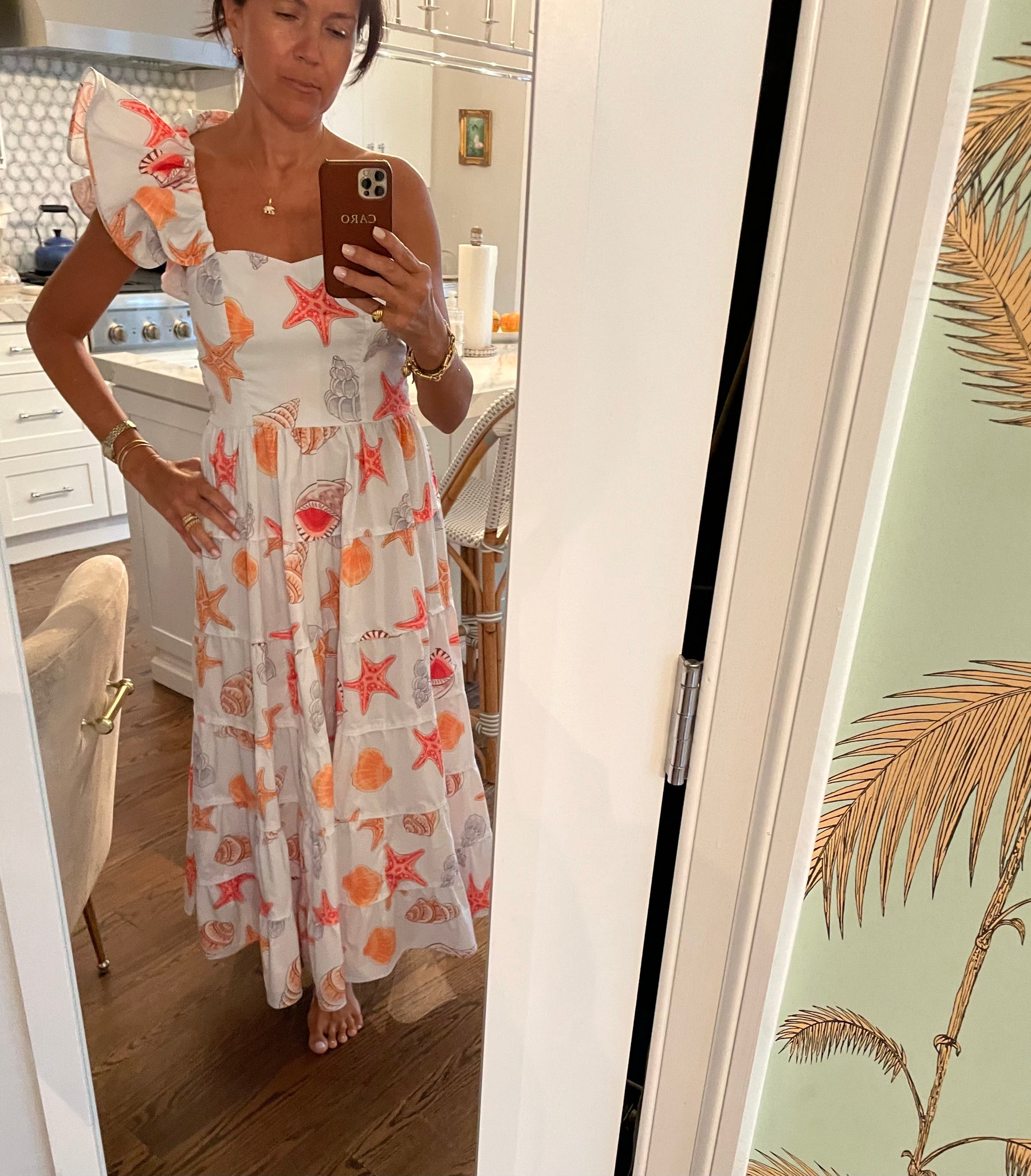 Sea shell cotton poplin maxi dress perfect for the beach or summer event.